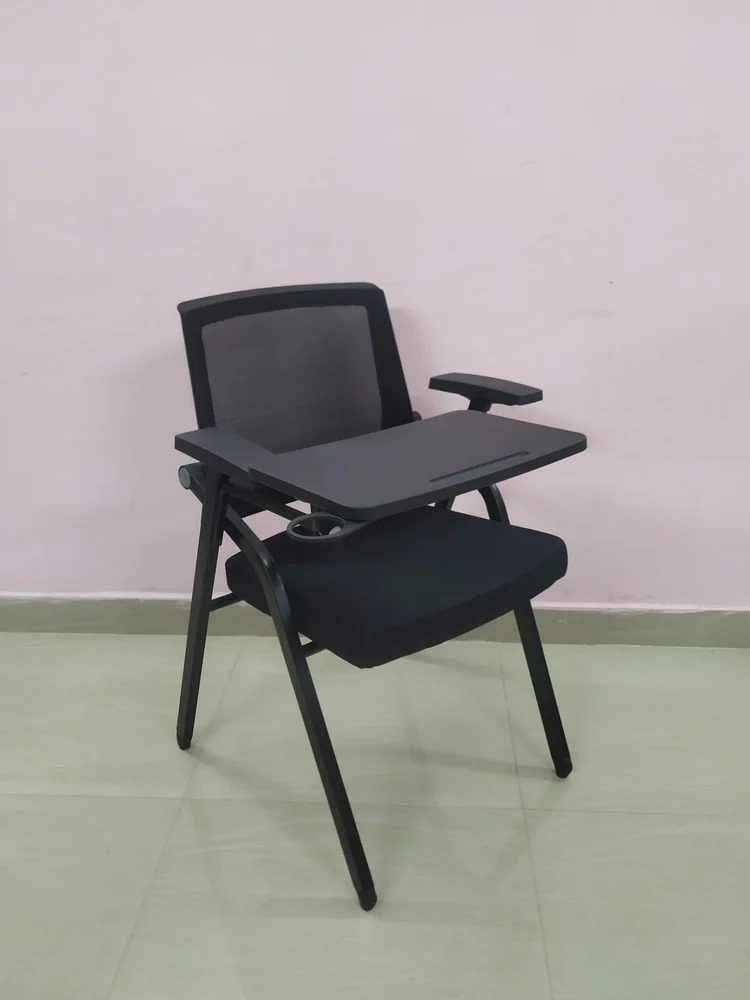 Equip your learning space with this ergonomic training chair, designed for comfort, mobility, and productivity. Featuring a breathable mesh backrest, cushioned seat, and integrated writing pad with a cup holder, this chair is ideal for lecture halls, seminar rooms, and corporate training centers. The writing pad swivels for easy access and supports notebooks, tablets, or laptops. Whether you’re hosting workshops, onboarding sessions, or academic programs, this chair delivers a sleek, functional solution for focused engagement.
