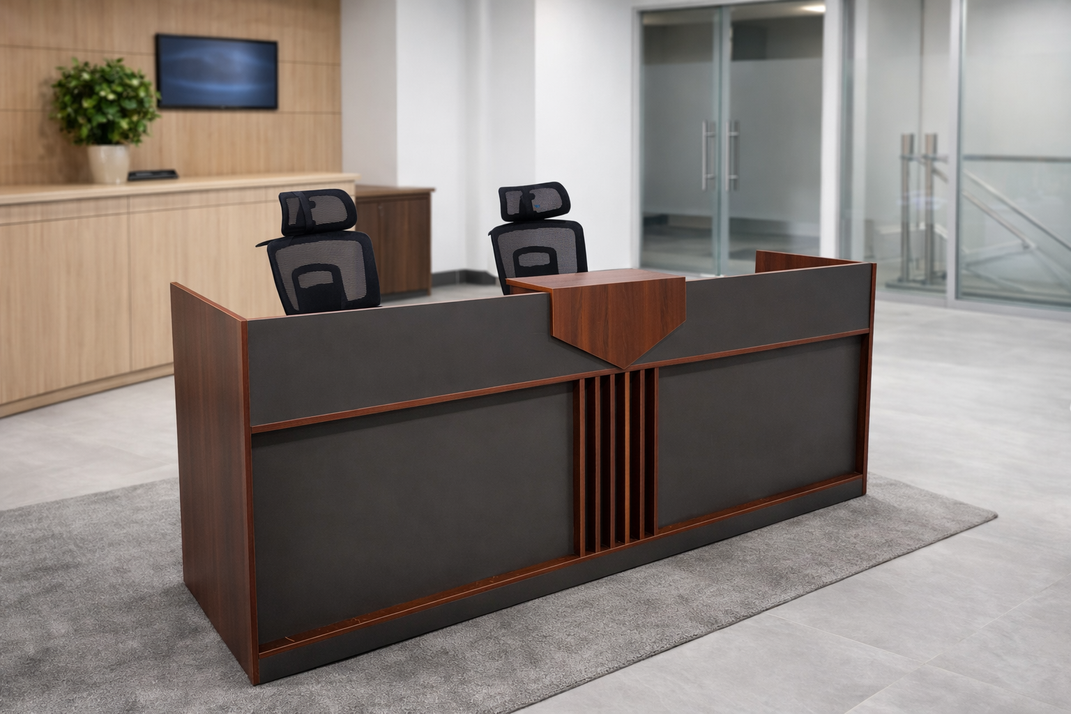 - Reception Desk (Double Workstation) – Designed for two receptionists.